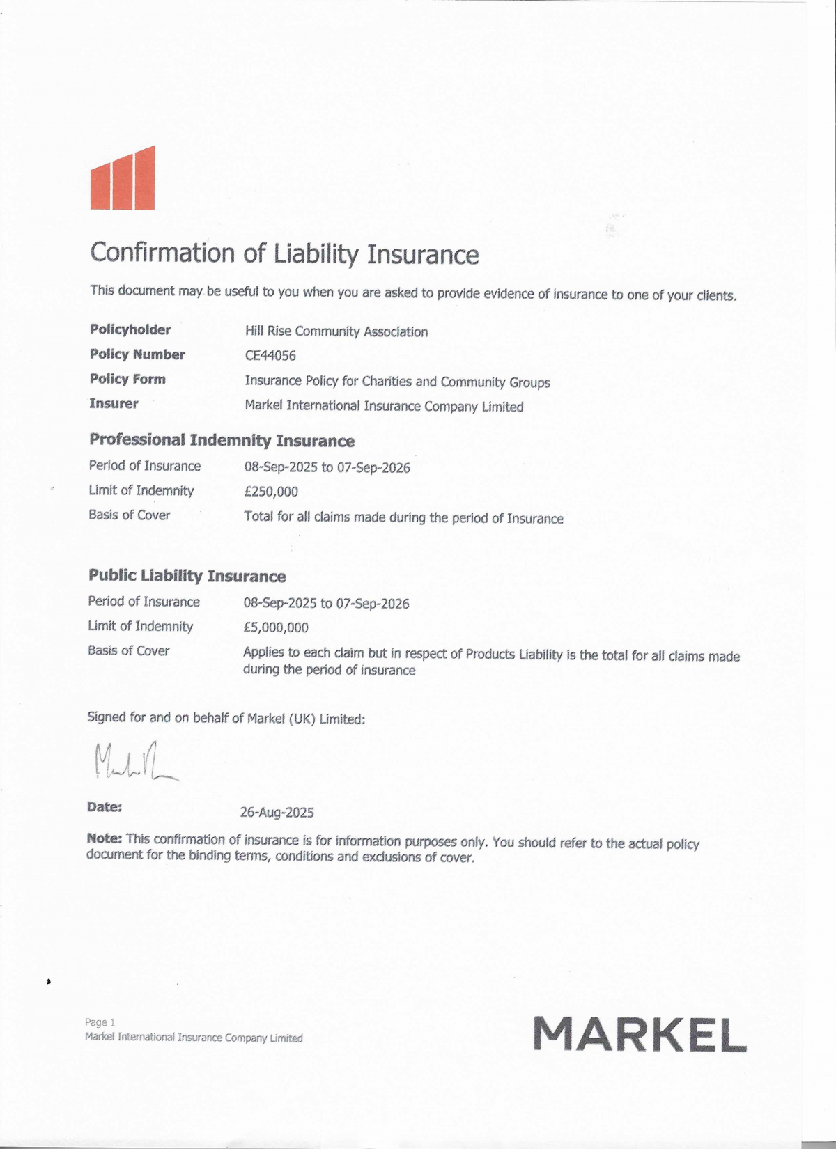 Electronic versions of all policies applicable to Hill Rise Community Association and it's users are available below.